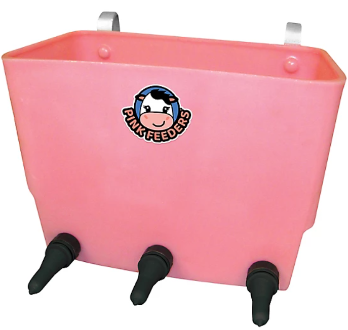 Los alimentadores y biberones rosados incluyen tetinas Skellerup Thriver, diseñadas para un flujo óptimo de leche, una alimentación natural y evitar fugas.