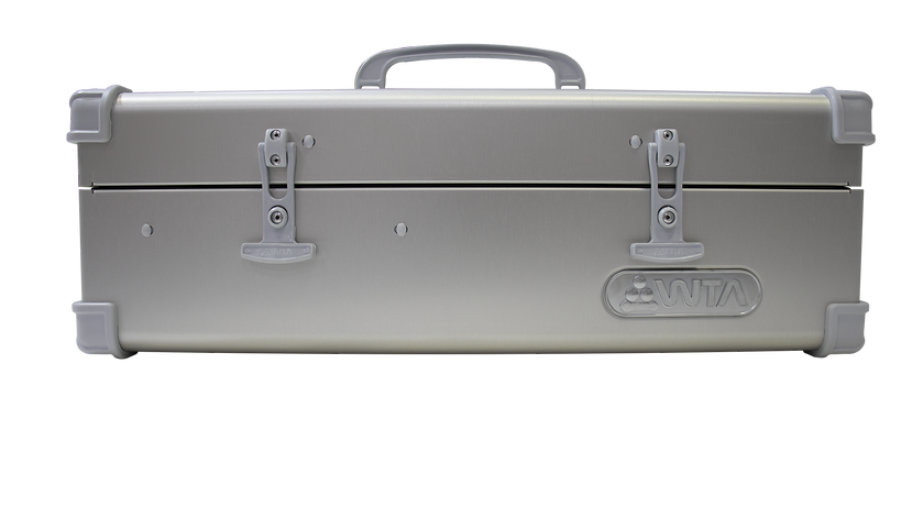 Caja de aluminio con un diseño ergonómico que garantiza la organización y un ajuste perfecto para transportar: